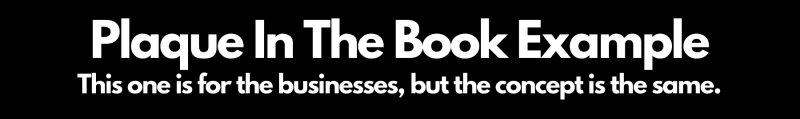 The Plaque In The Book will be the primary opportunity to make your brand/organization known to as many as you desire in a unique and favorable way. Additionally, (if you select the corresponding option in the form below) it will be blasted on Instagram, Facebook, YouTube, and LinkedIn that your brand/organization has made a difference in the lives of the Little People through this effort.